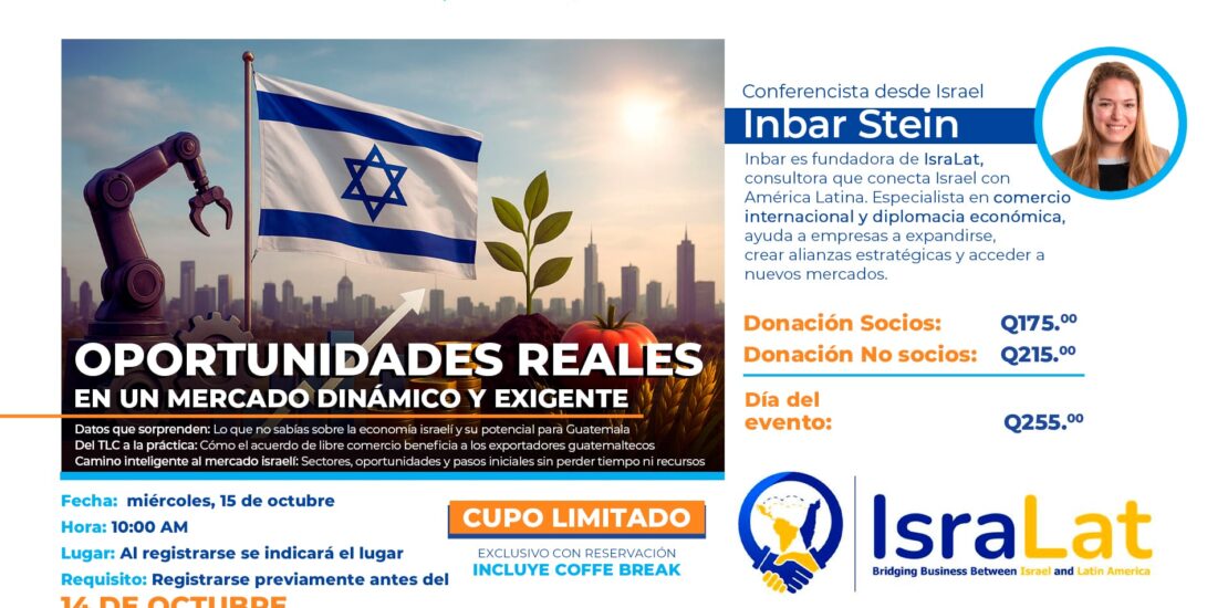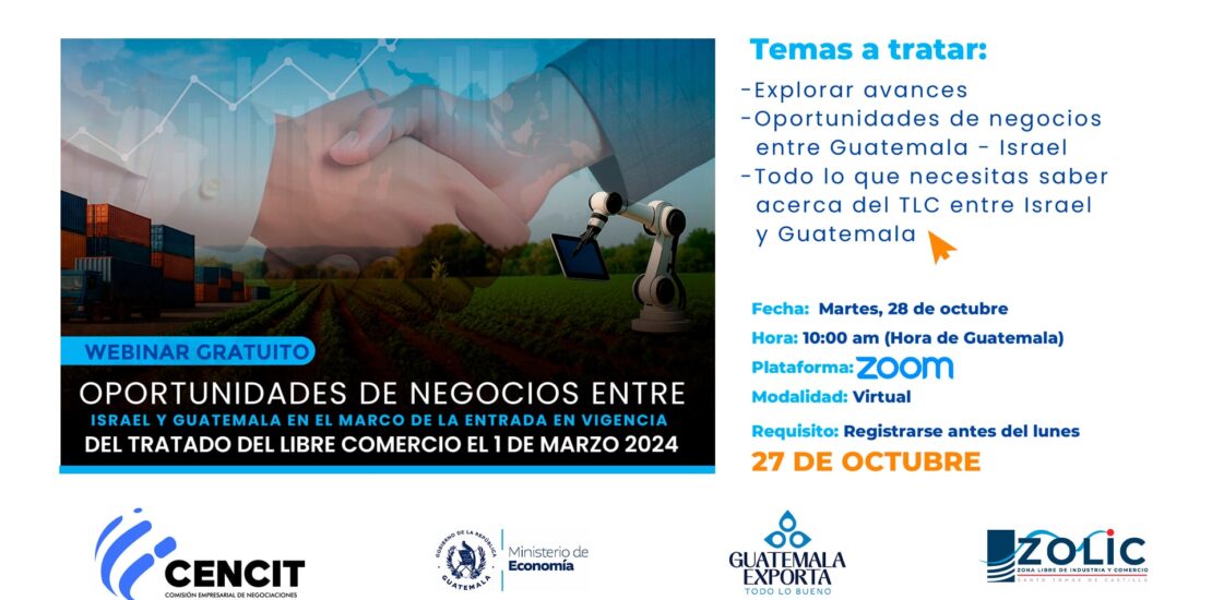 Webinar gratuito sobre oportunidades de negocios entre Israel y Guatemala tras la entrada en vigencia del Tratado de Libre Comercio.
