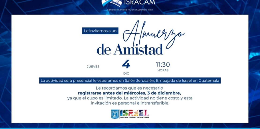 Almuerzo protocolario de la Cámara de Comercio y Turismo Guatemala–Israel en honor a la Delegación de Israel, con motivo de la firma del Plan de Acción para fortalecer la cooperación aduanera y comercial entre Guatemala e Israel.